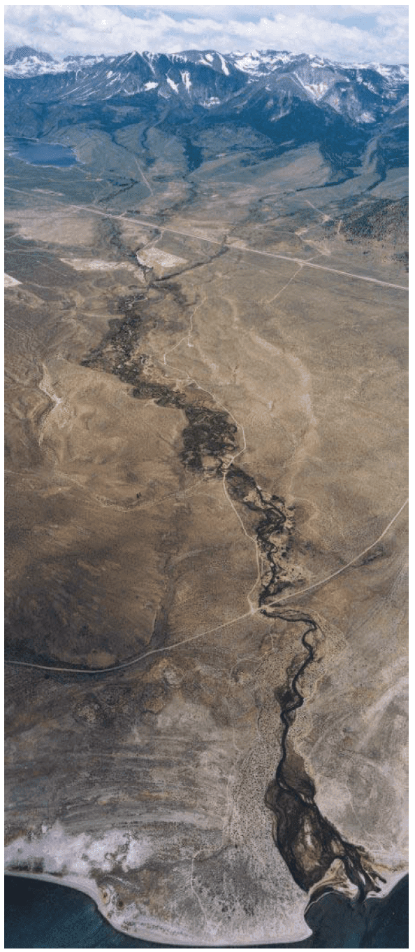 By 1979, Mono Lake’s surface level had receded forty-three feet below pre-diversion level, lost half its volume, and doubled in salinity. In most years, the four main tributaries, those “little mountain brooks” - Rush, Lee Vining, Parker, and Walker creeks - were dry most (if not all) year, and fish populations disappeared.