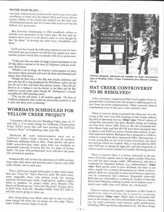 Three days after that, CalTrout petitioned to introduce state legislation to preserve the Eel, Trinity, and Klamath rivers from dams and future development. As CalTrout’s first Streamkeeper’s Log remarked, “That’s action!”