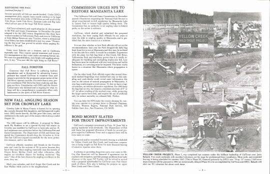 In 1978, DFG launched a progressive and dramatic new plan to manage Martis Lake for Lahontan cutthroat trout, which were listed as “threatened” by state and federal agencies and only existed in nearby Independence Lake. The project was billed as a smashing success with the angling returning as “nothing short of sensational ever since.”