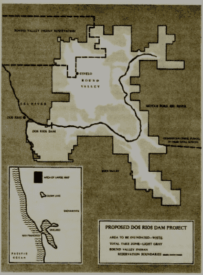 In 1967, the U.S. Army Corps of Engineers proposed to build an enormous dam just above the confluence of the Eel River and the Middle Fork Eel River at Dos Rios. The Dos Rios Dam would have been 730 feet tall to create a reservoir that covered 110,000 acres of land, including Round Valley, the Middle Fork Eel River watershed’s primary agricultural area, the town of Covelo and the Round Valley Indian Reservation.