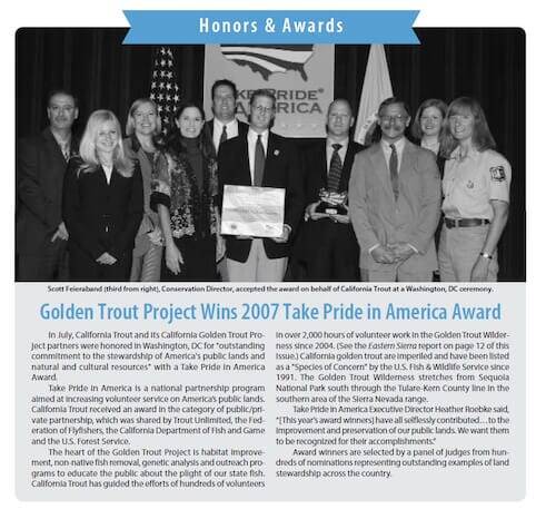 to better manage natural trout and steelhead systems. It represented the first time the California legislature and the governor acted specifically to recognize, preserve, and manage the state’s quality wild trout resources.