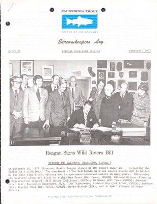 The February 1973 issue of the Streemkeepers Log is most notable for celebrating the California Wild and Scenic Rivers Act, signed by Gov. Ronald Reagan a few weeks prior.