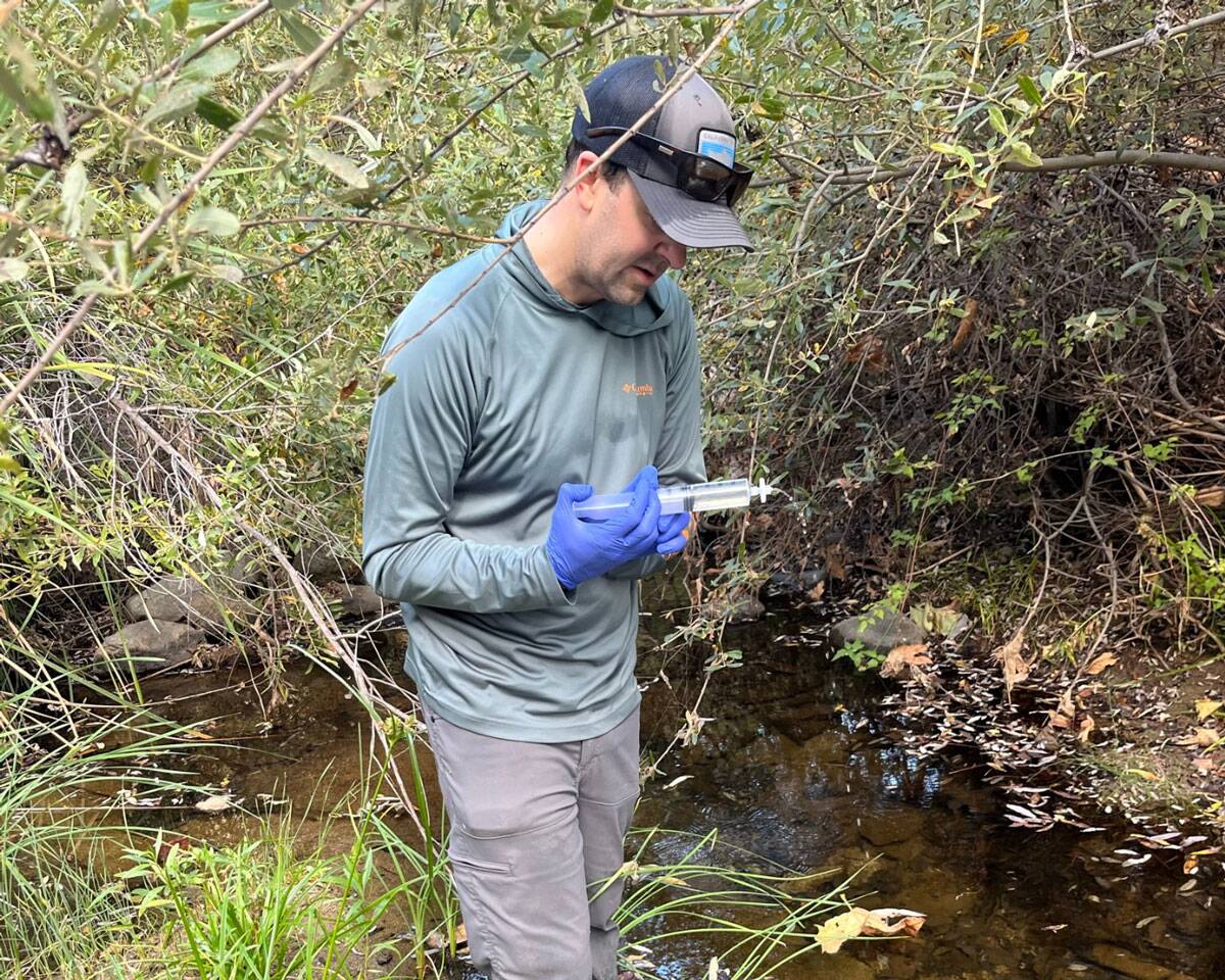 To understand more about the presence of invasive species and how it varies throughout the watershed, we conducted environmental DNA tests, called eDNA which can identify tiny amounts of DNA shed into the stream even if the fish are few and far upstream. Water samples collected at three different sites in San Mateo Creek will be sent to a lab for molecular amplification and analysis. This data will also provide us with more information about how or if Southern steelhead are using the creek. The results of this data are currently processing and will be available in early 2024 – stay tuned for our findings!