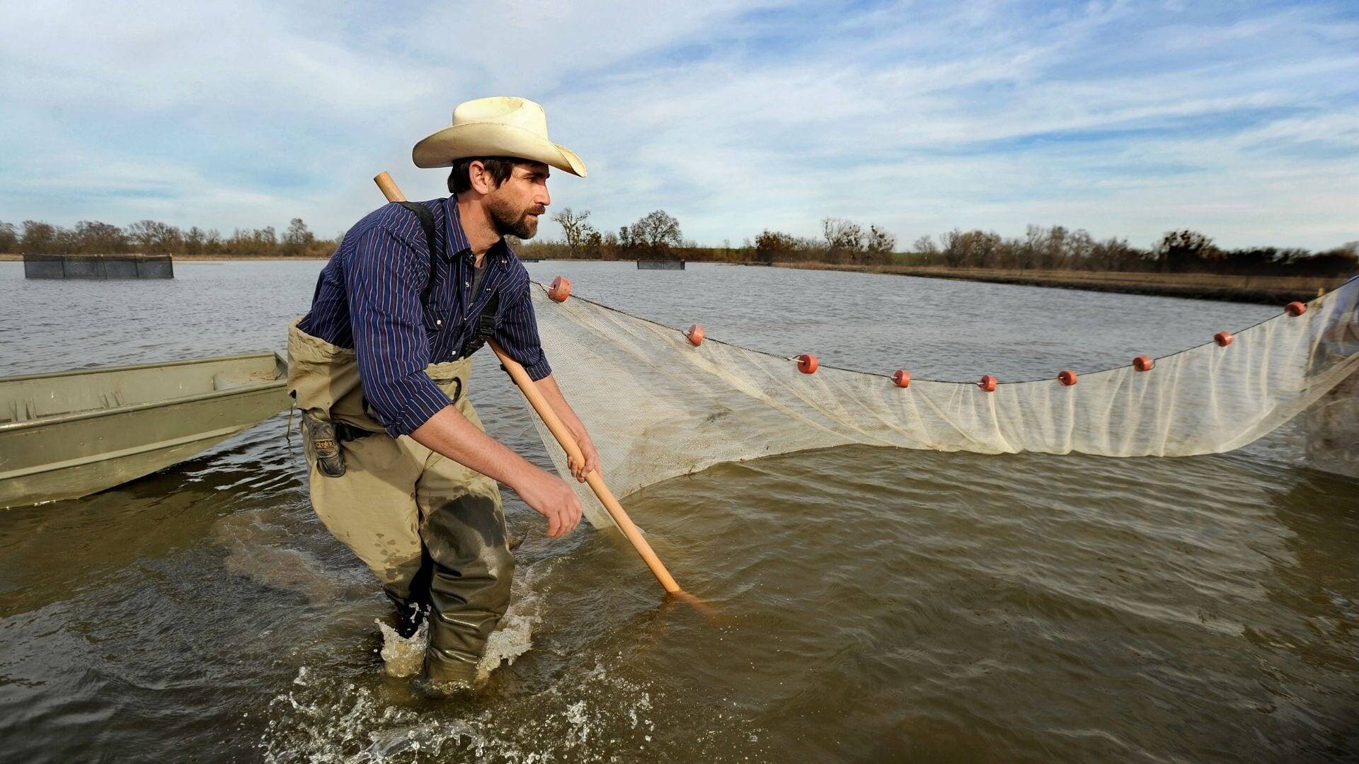 Photo: Jacob pulling a seine net to survey for fish growth in the floodplains by Mike Wier