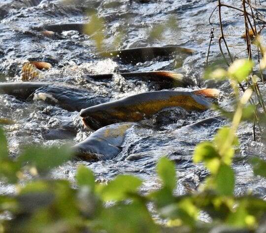 Salmon are cold-water fish and the cold flow from volcanic springs allowed salmon eggs and embryos to incubate in the cold water they need even during the hottest time of the year.