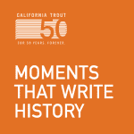 In 1971, these activist anglers, determined to focus entirely on California waters and trout, left TU and incorporated themselves as California Trout, dedicated to creating quality wild trout habitat and wild trout fisheries across the state. Now, fifty years later, California trout fishing has been defined by CalTrout’s efforts. Consider this timeline of notable achievements: