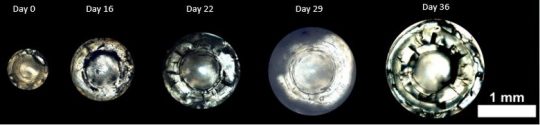 Cross section of juvenile Chinook salmon weekly lens growth on the Yolo Bypass. Time 0 represents fish from the hatchery arriving to the floodplain enclosure experiment detailed in Jeffres et al. (2020)