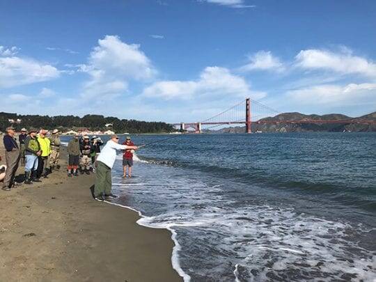 Lost Coast Outfitters providing fly casting instruction to PHWFF-SF vets at Crissy Field