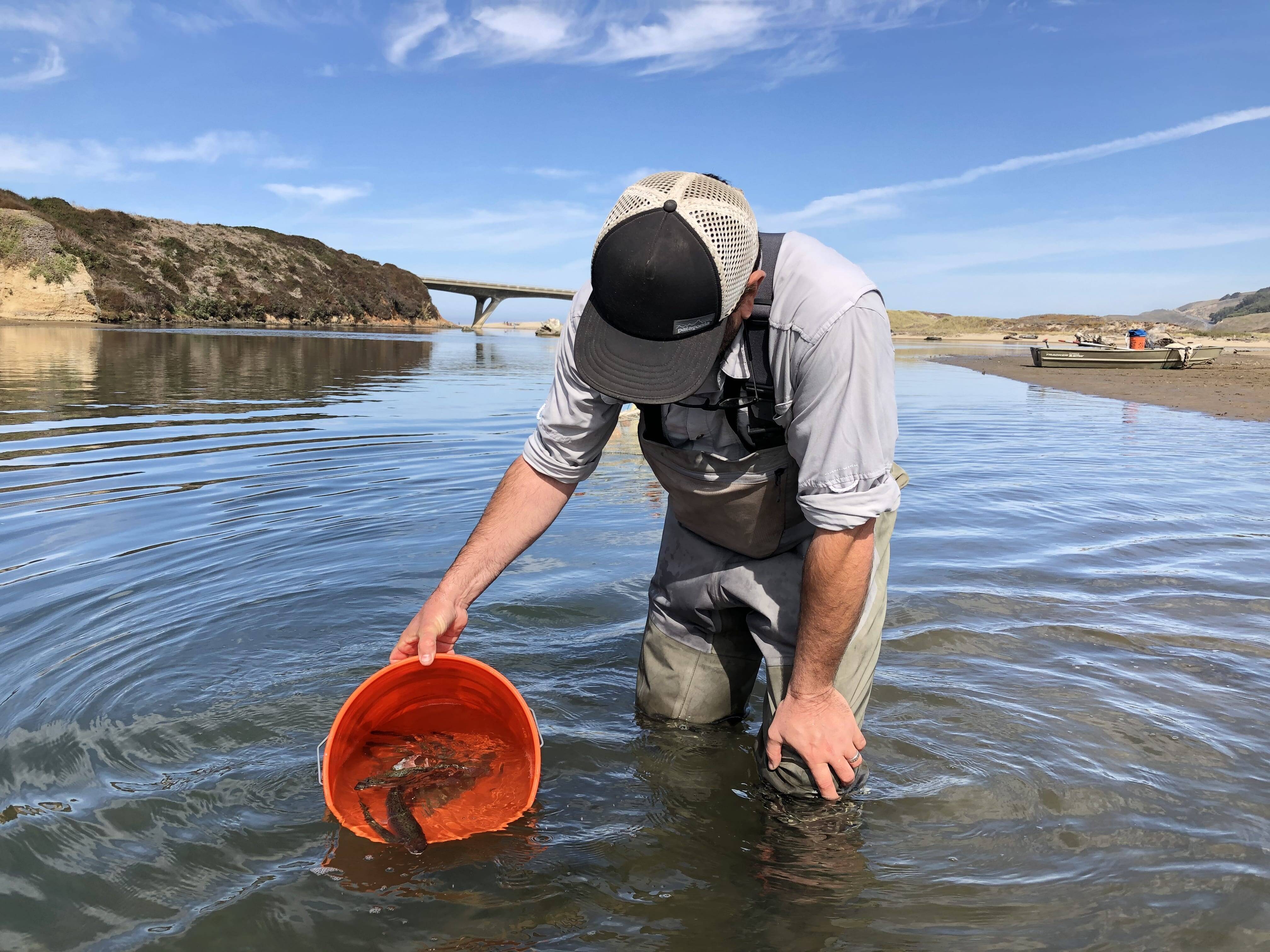 Photo: Releasing captured fish back into Pescadero Marsh.