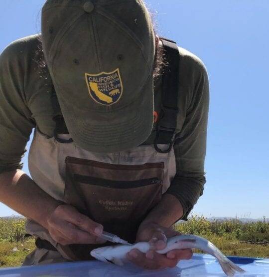 CalTrout’s work to restore estuaries includes a project partnership with the California Department of Fish & Wildlife (CDFW), California Trout, Trout Unlimited, and NOAA Southwest Fisheries Science Center to track tagged fish moving in Pescadero Creek.