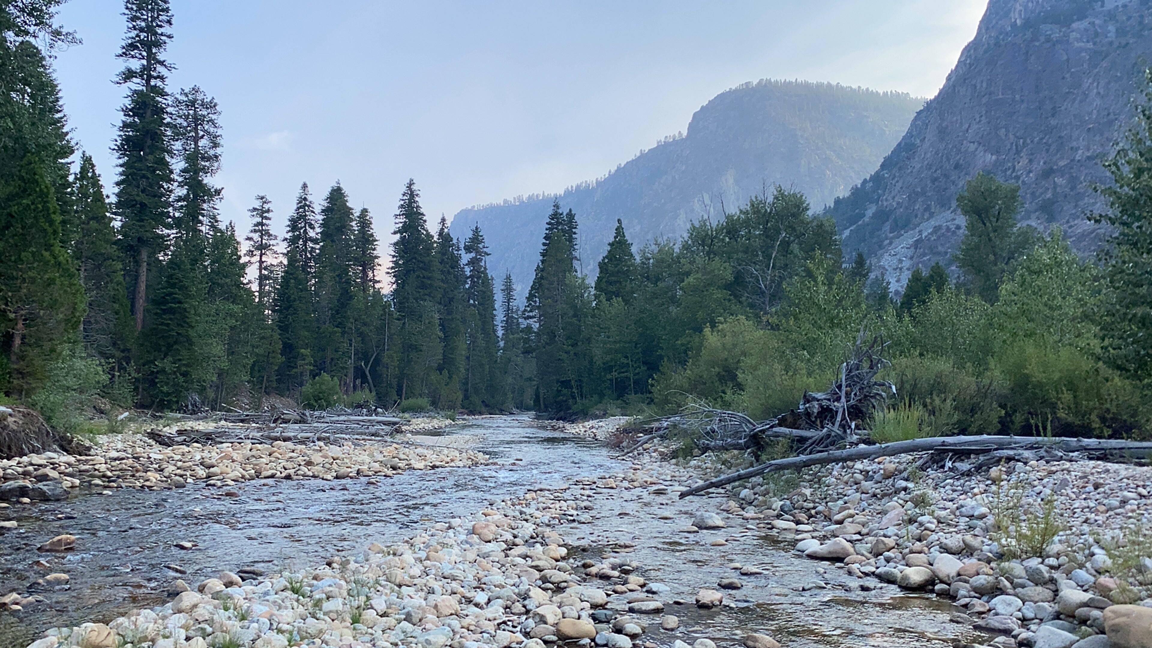 I had been chased out of the mountains by fire further upstream on the Kern the season before. And in addition to fires, we had experienced relentless drought again over the winter. I even wondered how much water would be in the river. What if I walked in for days, only to find it at a trickle, and the alpine water too warm to fish? Right out of the parking lot, the creek we had filmed several years earlier at Horseshoe Meadows, then teeming with golden trout, was now just a dusty, parched stream bed. Milkey and Bullfrog Meadows on the other side of 11,000 foot Trail Pass was a desert.