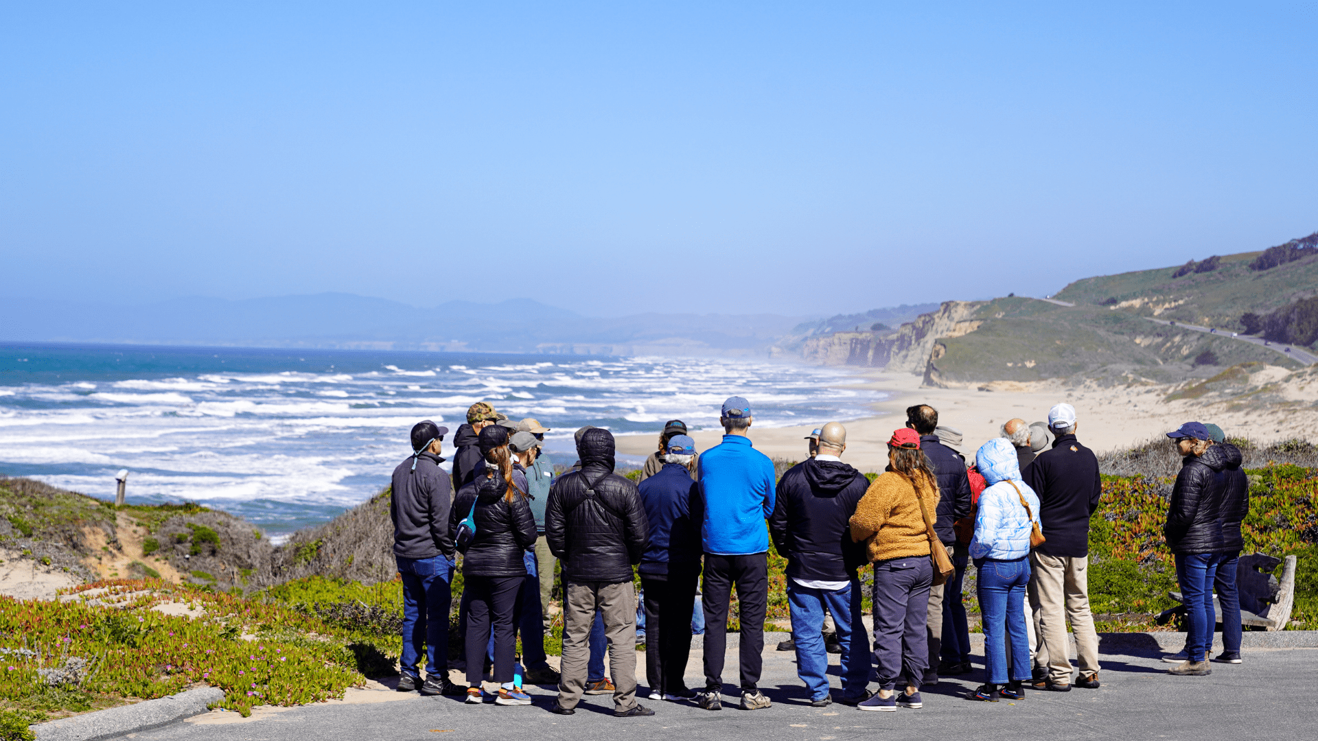 The sun is shining —a rare fog free day on the coast of San Mateo County, California. Patrick Samuel, CalTrout’s Bay Area Region Director, leads a group of CalTrout members and some staff, imparting us with his wealth of knowledge of this area.