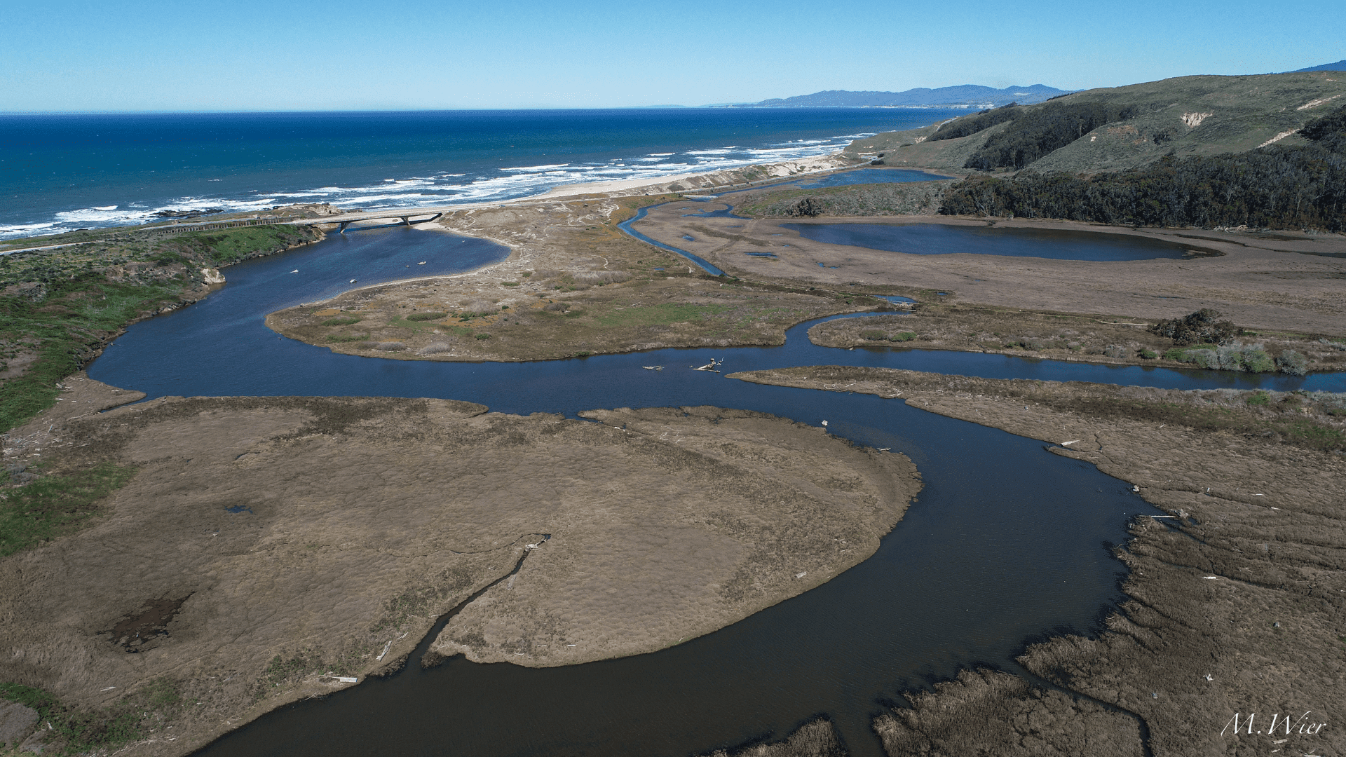 We are standing on ancestral Ohlone Tribal land in the parking lot of Pescadero State Beach with the wind rushing towards us from across the ocean. To our east, Pescadero Marsh lies resting in the sun. To our west, its water flows lazily out to sea via the mouths of Pescadero Creek and Butano Creek converging. This place is special for a number of reasons: it is one of the best remaining habitats for coastal steelhead in the Bay Area, it offers unparalleled opportunity for anglers, and is also beautiful enough to steal your breath.