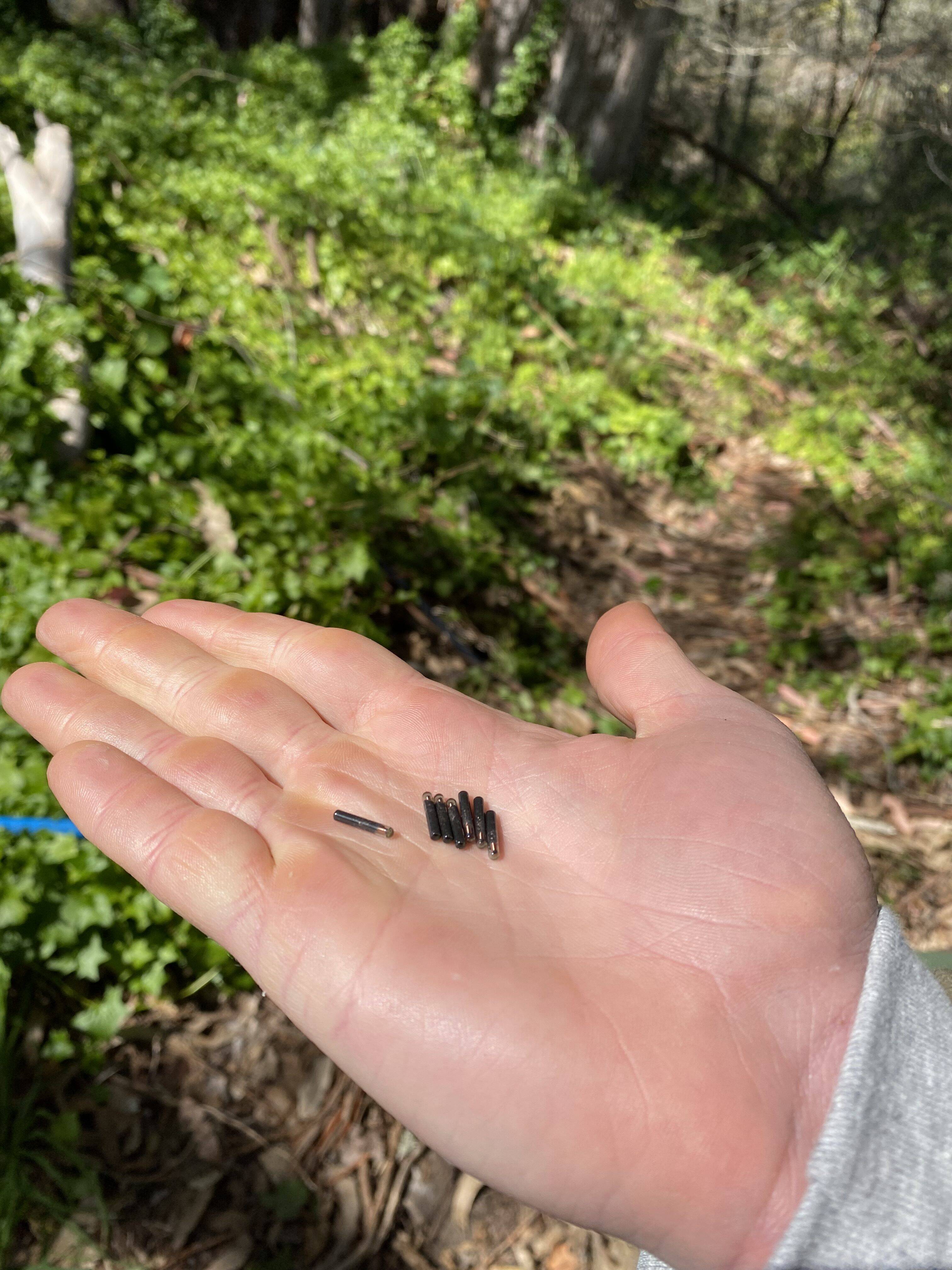 What is a PIT tag? PIT stands for Passive Integrative Transponder. These tags are typically around 1.25 cm in length and are safely inserted in juvenile steelhead using a hypodermic needle. Once inserted, the tags can provide important information about fish movement and behaviors over the course of their lives, similar to the tags in your pet dog or cat. Researchers use a special reader or antenna in the creek to scan the fish and record the unique tag number. Scanning the fish helps researchers learn more about how they grow and their time spent in fresh versus saltwater. In any given sampling year, CDFW staff and partners tag between 400 and 800 juvenile steelhead.