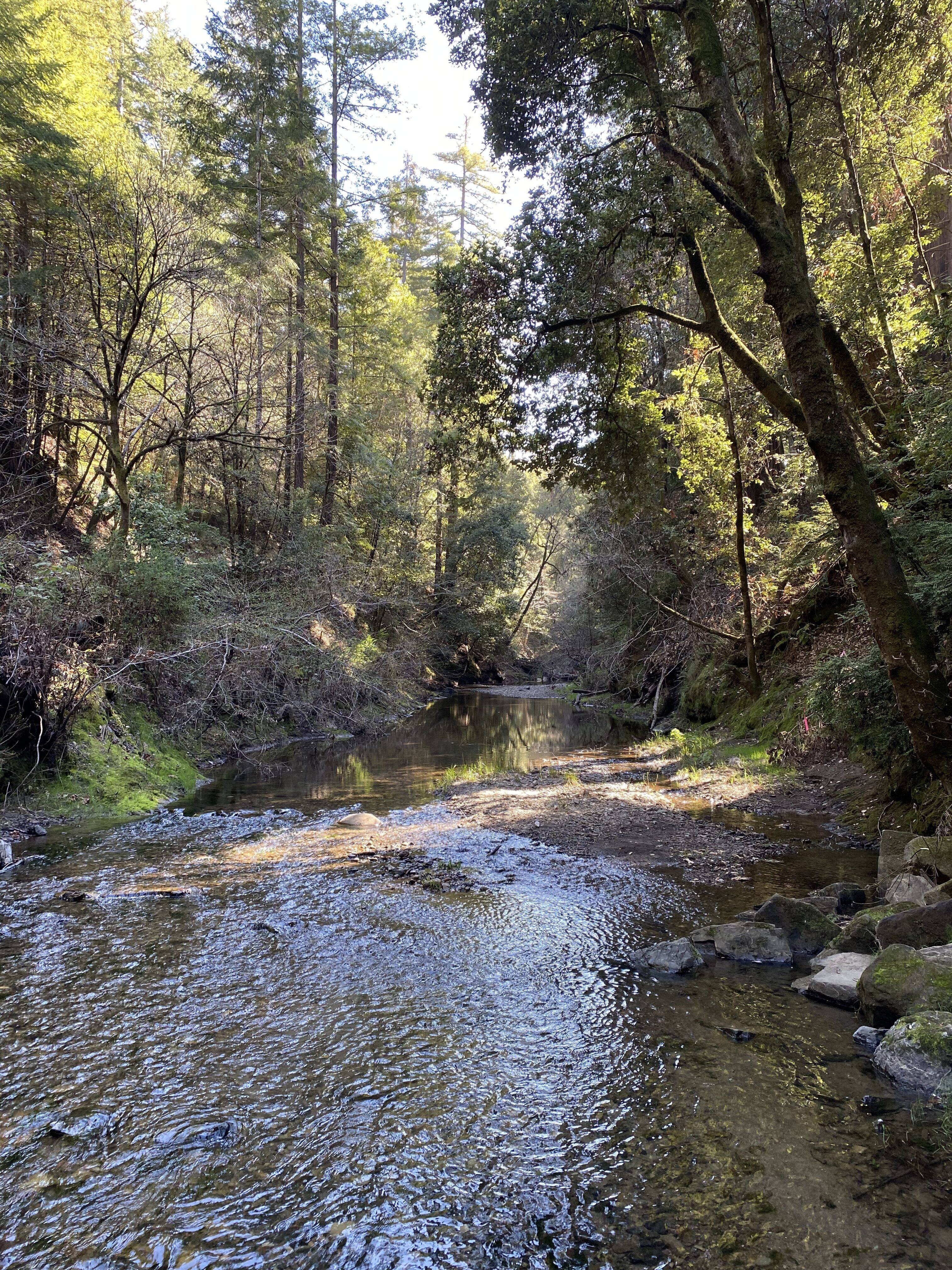 Our final stop is in the cool shade of the redwoods. We are in Memorial Park in Loma Mar, surrounded by towering tree giants, tall enough to humble you, and we are on the hunt for redds.