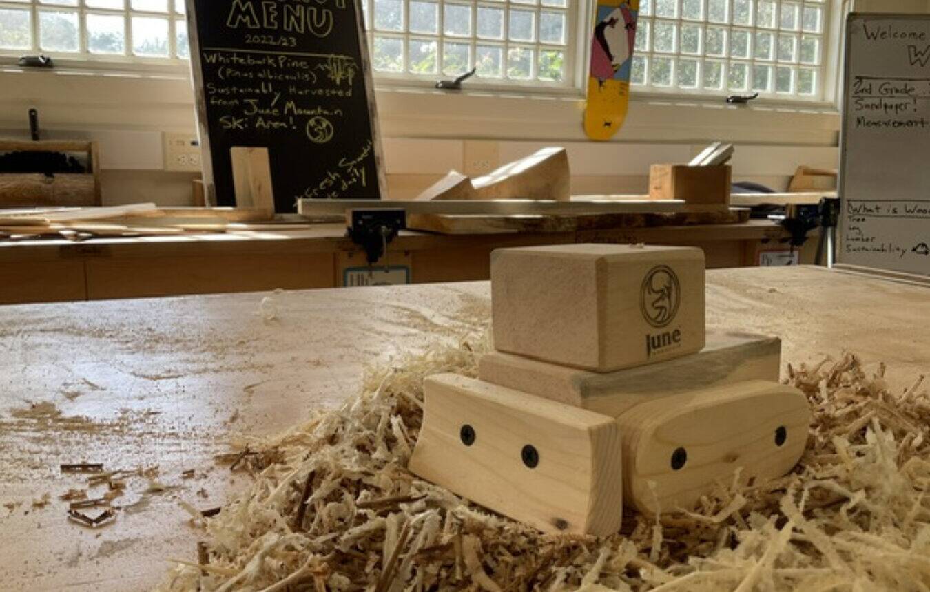 He loaded it into his truck and brought it back with him to the school’s 120-year-old woodshop. Before using the wood, Lang and his students, aged pre-K through eighth grade, always look up the tree species to learn more about it and where it came from. Then, the students are involved in the milling before they craft it into all sorts of objects.
