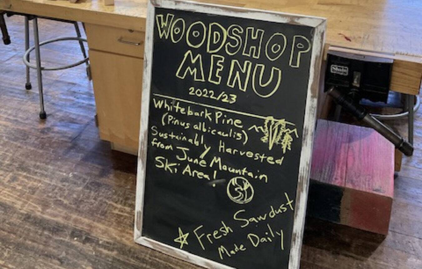 Ryan Lang learned to ski on June Mountain. When he was young, his uncle had a cabin where he and his family would spend time. Today, as a woodshop teacher at Ojai Valley School, he is always on the lookout for down or dead logs. On one of his trips up to June Mountain, he came across the public wood collection site with trees thinned from the mountain.