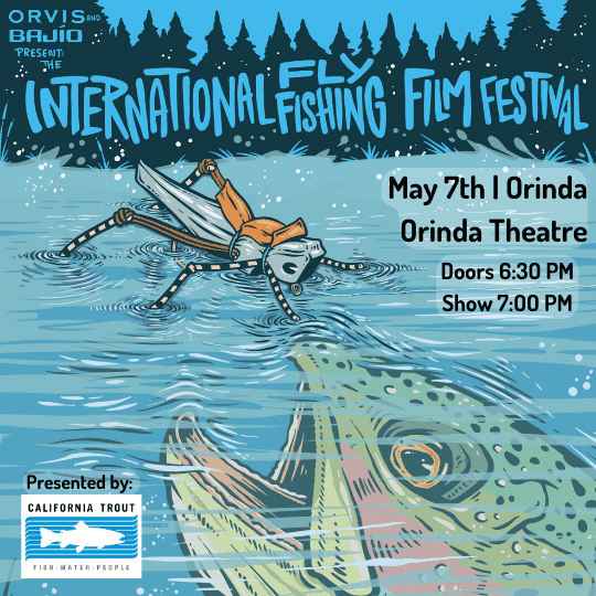 It’s o-fish-ial: California Trout is pleased to bring back The International Fly Fishing Film Festival (IF4) for 2024, returning to Orinda! Enjoy an evening immersed in short films that showcase fly fishing stories from around the globe. Before the show, chat with CalTrout staff about recent projects and enter a raffle for a chance to reel in great prizes. Reserve your spot today for the top fly fishing film event of the year!