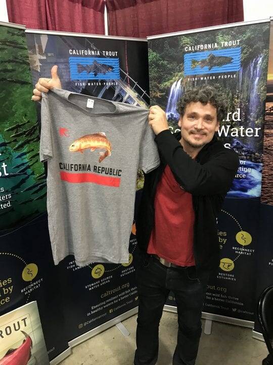 Paul Waters is the illustrator of the fish featured in the SOS report. Here he is posing with his artwork of the golden trout printed on the new CalTrout Cal Republic T-shirt. Purchase yours today at www.caltrout.org/gear