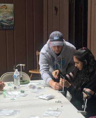 CalTrout’s Bay Area Manager, Patrick Samuel, opened the event with a brief introduction about the importance of fish as an indicator species and what food they eat. These teens learned that insects and bugs are a large part of a fish’s diet. That’s why when anglers make flies for fishing, they mimic the bugs or “flies” you would naturally see appearing in the river. The students learned how to tie an ant fly which may sometimes fall into the river from logs and trees and then become food for fish.