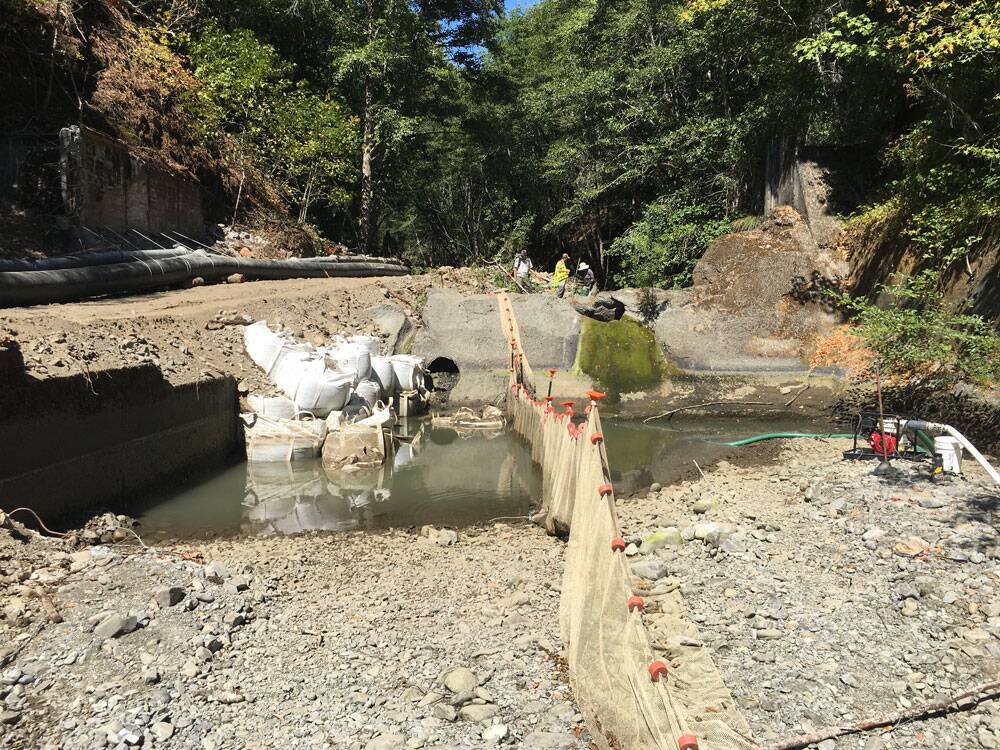 The now removed dam was constructed in the 1940s to supply water for a CDFW hatchery and its rearing ponds. In the 1950s, the dam was damaged by a flood, and in 1964, another flood led CDFW to completely abandon hatchery operations. For 60 years, the dam remained.