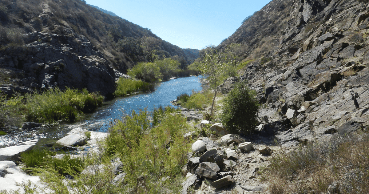 As one of the few perennial rivers in Southern California, restoration of the Santa Margarita River offers a prime opportunity to recover the endangered, yet resilient Southern steelhead. The river still has natural channel characteristics necessary for migration and propagation of the species and has been designated as high priority for recovery as outlined in the National Marine Fisheries Service (part of NOAA) federal recovery plan for Southern steelhead. Thus clearing the vegetation for construction has been carefully mapped out to minimize impacts. In the image below it is not visible from an upper trail.