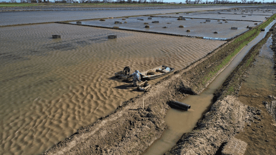 Winter-flooded rice fields in the Central Valley could serve as surrogate habitat for out-migrating juvenile Chinook salmon. Similar conservation success models have been developed for migratory waterfowl. Dr. Rypel’s lab will be investigating this potential over the next few years in collaboration with CalTrout. Photo by Leah Mellinger