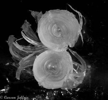 To read this isotopic history, Tilcock uses fine-tipped forceps to remove layer after layer, revealing a veritable Russian Nesting Doll of eye lens layers. In the center is a tiny ball, something like what you’d find in a silica packet, which can shatter like glass. This is the core, where the fish’s eyes first began to develop.