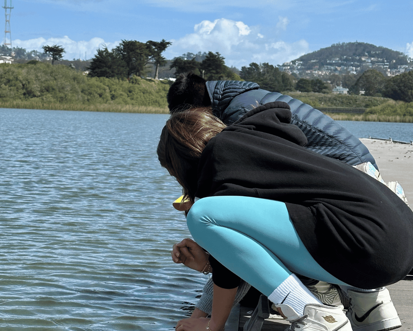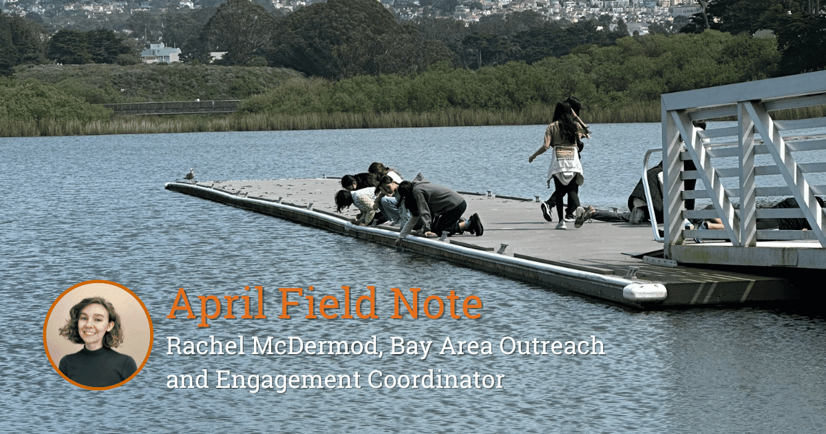 About six weeks after dropping the eggs off in the classrooms, I have the pleasure of joining the classes on their release days at Lake Merced in San Francisco. Each release day I attend is buzzing with excitement as students hop off buses and hurry to the lake. I am tasked with scooping the tiny – and incredibly fast—fry from the buckets they have been transported to the lake in and placing them in small plastic cups that the students will use to gently set them free. Once scooped into the cups, the trout are passed into the hands of eager students.