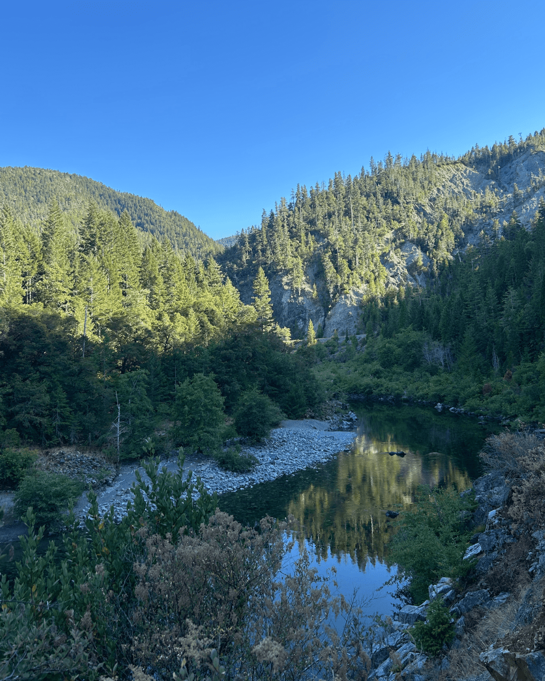 Tuesday began with an all-staff session discussing employee satisfaction at CalTrout. This includes opportunities to improve (no one is perfect, right?) and all the things staff love about working at CalTrout that enable us to do the great work driving our state-wide mission. It was a privilege to be in this conversation so early on so I could see the team members’ favorite parts of working at CalTrout and how forward-looking the organization is. After the session, it was lunch time and the part that I was looking forward to the most – free time in the Smith River. This was the buzz as soon as everyone settled on Monday night. “Are you going in the river tomorrow?” “Did you bring your snorkel?” It was unbelievable how clear the water was. Listen, I come from Chicago…the fresh water isn’t exactly crystal clear so when I saw what we had right next to us, I was in absolute awe. Also, just knowing that some of the very creatures that we support, and research are in there made it even more special. Tuesday evening ended with dinner and a workshop before saying good night. We had a big day ahead of us.