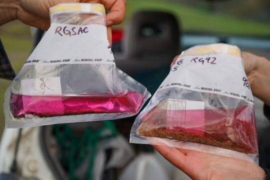 Fish food samples taken from the Sacramento River (left) and the floodplains (right). You can see that there is more food availability in the floodplains. Photo: Mike Wier