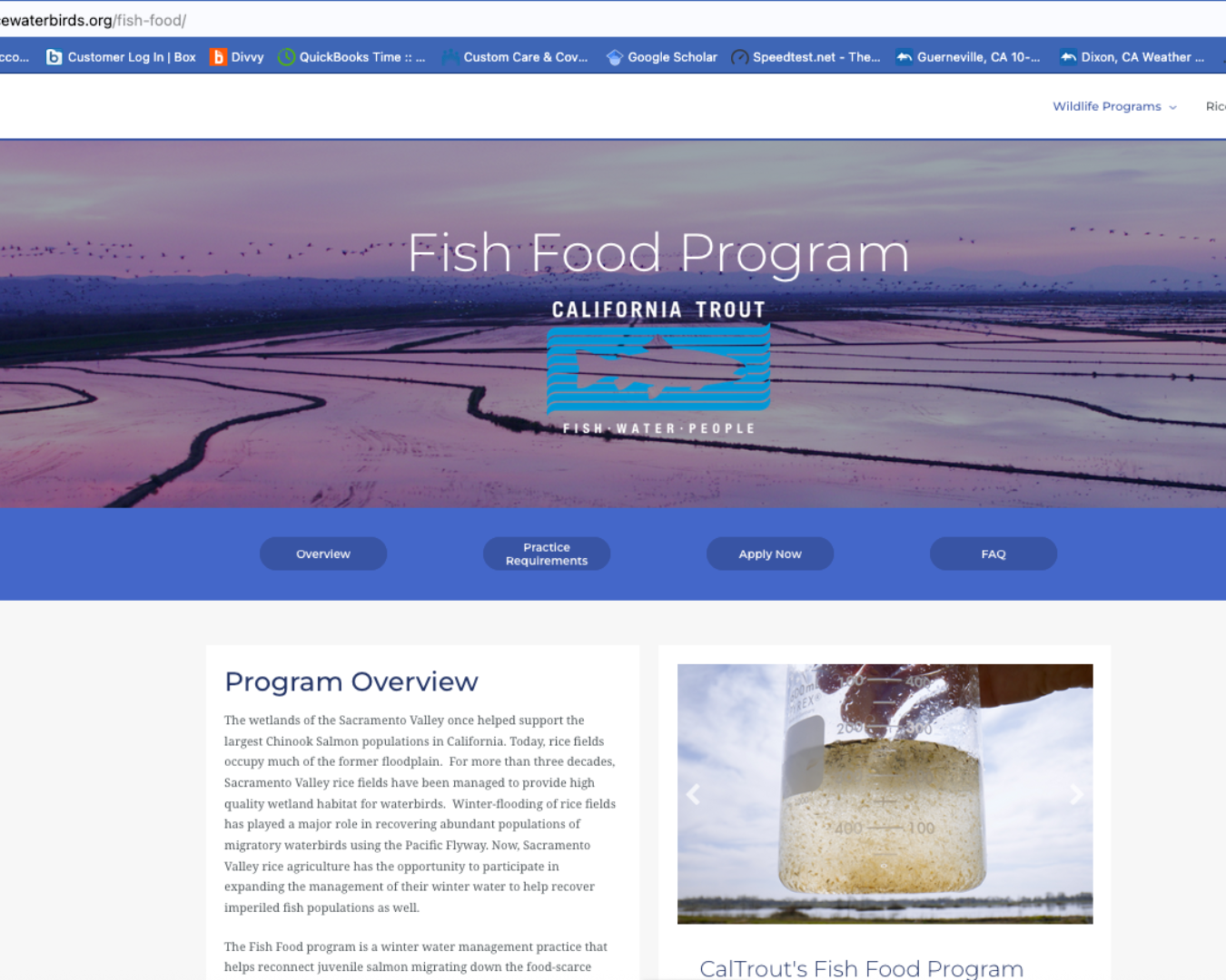 In 2022, we developed the online infrastructure for public, open enrollment into the Fish Food program in order to broaden landowner engagement. The California Rice Commission's partnership in this effort was transformative. Their conservation branch, the California Ricelands Waterbird Foundation, has a successful track record of facilitating waterfowl and shorebird conservation programs on winter-flooded rice fields. Hosting the Fish Food application on their website facilitated immediate broad access to the rice community from a trusted partner.