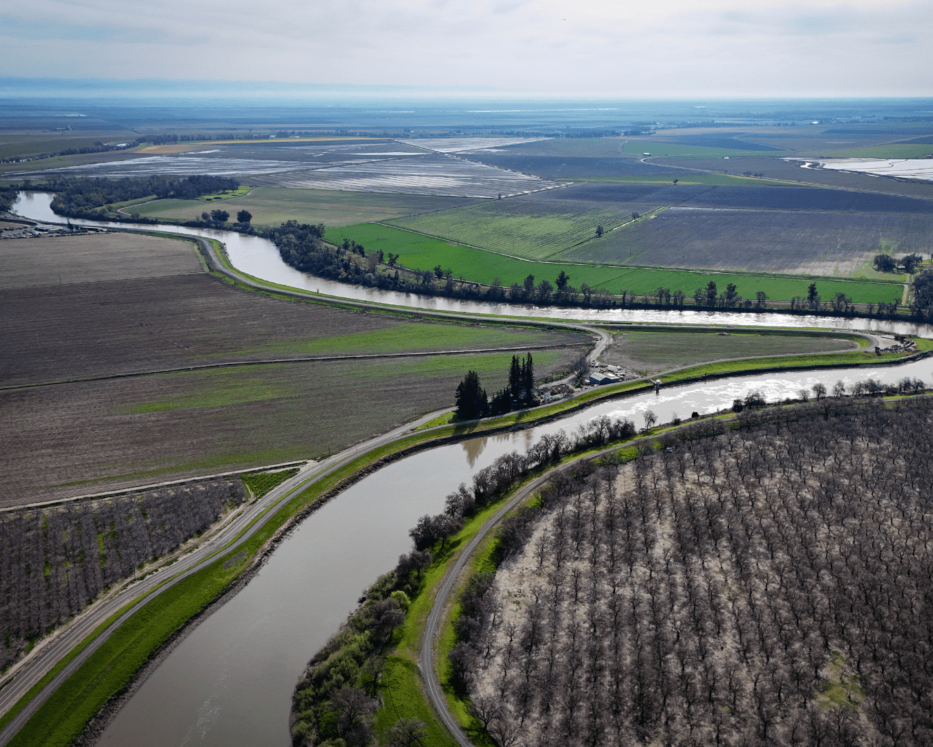 By diverting high flows onto specifically managed floodways these “bypasses” alleviate flood threat to Sacramento and other cities. The bypasses are extensively farmed during summer but can flood multiple times during the winter/spring wet season.