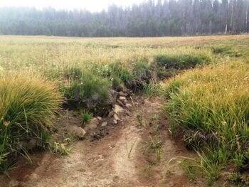 Before photo of a dry, incised gully that was restored by California Trout last year.