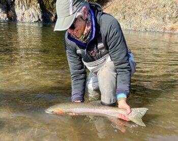 I came into fly fishing later in life – watching and talking with folks on the lower Klamath every fall fishing for the half-pounder steelhead run. On our 20th wedding anniversary, my husband and I decided to splurge and buy ourselves 6 wt rods and reels and learn to fly fish. Once I tried it, I never looked back.