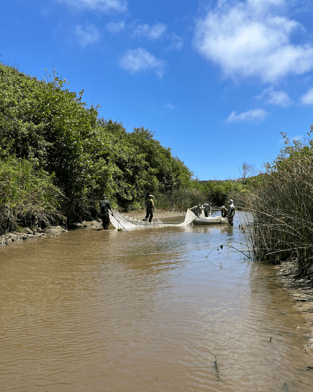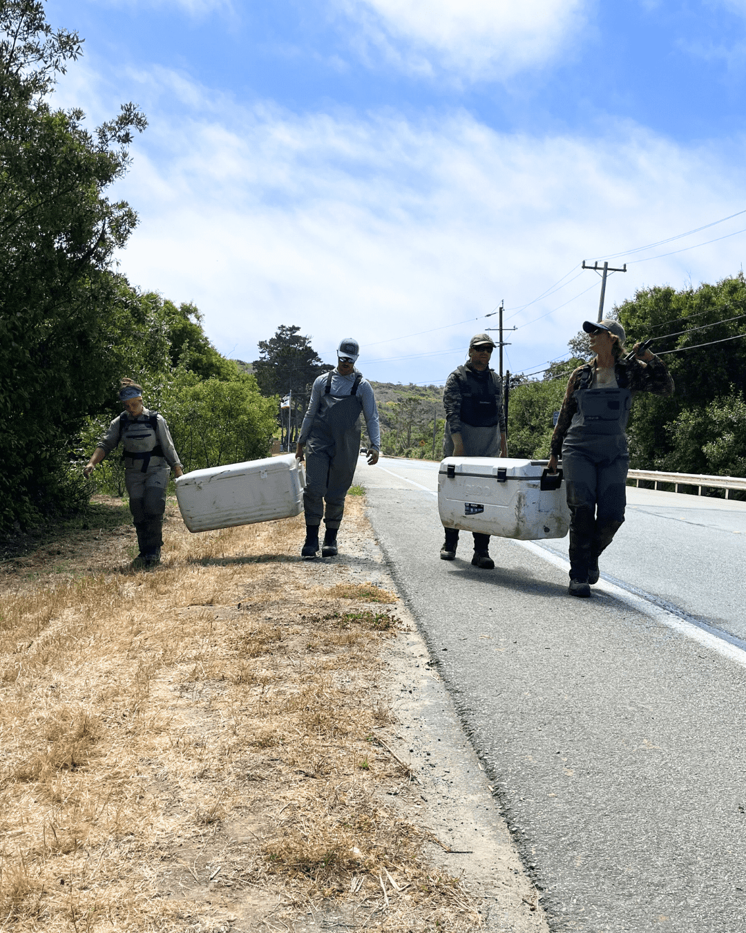 As the CalTrout Bay Area Data Analyst Intern this summer, I was able to apply my technical skills as a math minor in college to help restore declining fish populations in two places that shaped me – the Bay Area and the Pacific Northwest. My work was generally centered around deciphering patterns in Passive Integrated Transponders (PIT) tag detection data. These tags are embedded in fish so that we can better monitor and understand their movements. Specifically, I organized and analyzed data across different water years to identify migration trends in coho salmon and coastal steelhead populations in the Bay Area. Occasionally, I also escaped the spreadsheets and joined our partners and community scientists in the lower reaches of Butano Creek to sample steelhead by taking part in seine surveys. We captured, measured, PIT-tagged, and released juvenile steelhead to help agencies monitor population trends in the Pescadero watershed. Separately, I visited multiple PIT antenna sites in Pescadero, Butano, and other creeks. These antenna sites record when a tagged fish passes over, helping us track their movements as they move up from the marsh along their upstream spawning and rearing migrations. These experiences were key to bringing the data analysis to life.