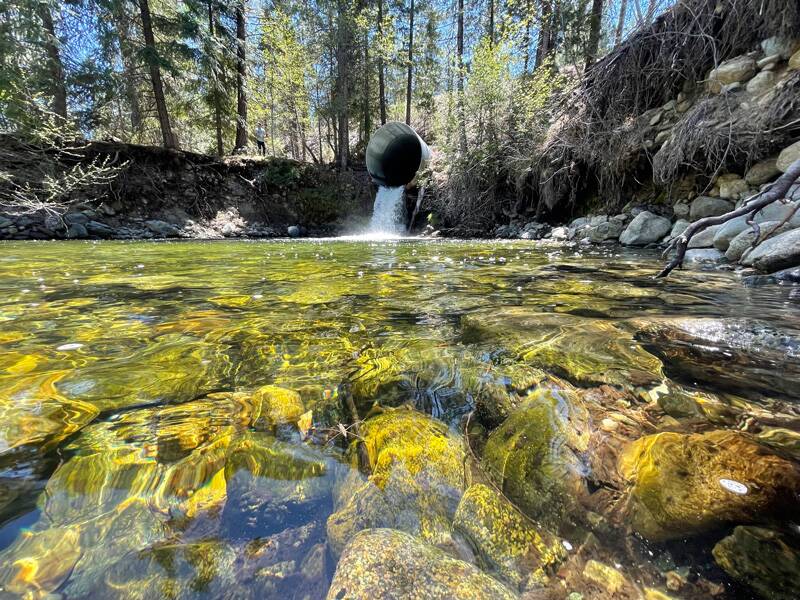 The culvert, installed in 1969, is a complete barrier to any aquatic animal attempting to swim upstream. Above the culvert, on the upstream side of Highway 3, miles of clean, cold water interspersed with deep pools could provide optimal habitat for both juvenile and adult fishes, particularly coho salmon and steelhead. However, this pristine habitat is currently inaccessible and has been for decades. The implemented project would open two miles of anadromous habitat. Fish species affected include coho salmon, steelhead, resident trout, and other resident species including Pacific lamprey, Pacific giant salamanders, and marbled sculpins.