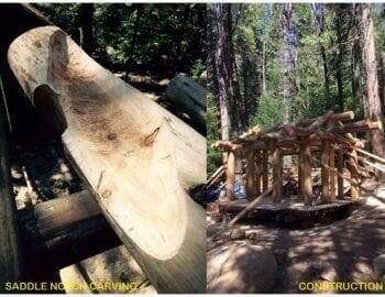 The 170 sq-ft piece was completed in September 2016 by Design Architect Mark Gangi, Engineer Hong Tam, and CalTrout’s Craig Ballenger serving as General Contractor. The project was an intense collaboration of all involved. Every detail, log, and method was discussed at length with the team. The high level of craft resulted from the collaboration and the shared belief that we were building something special in a sacred place.