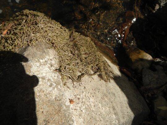 Patrick Samuel started off the day with an introduction to the coho salmon lifecycle. Then Dr. Rob Lusardi went into the creek to collect a bug sample using a net and explained how to identify the invertebrates that make up the coho salmon diet. These samples can be collected and brought back to the classroom and analyzed under a microscope to classify each species.
