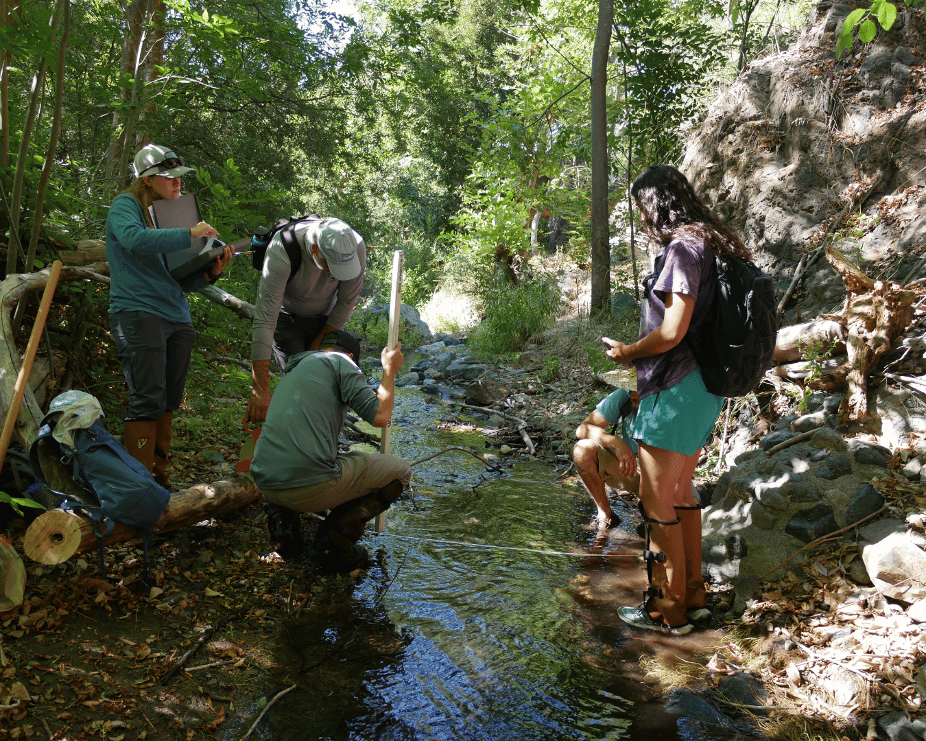 There are also less invasive ways to monitor fish. In Southern California and in the Sierra Nevada mountains, we use environmental DNA (eDNA) which involves analyzing small traces of DNA that fish may shed into their environment as they move through it. By sampling water at different times and locations, we can better understand where different species are present, including native and non-native species. Sometimes, monitoring is as simple as walking along a creek and looking for difference evidence of fish, like redds, or nests of eggs. It’s not just scientists that can monitor fish - community members can get involved in this work too! From documenting photos and participating in volunteer creek survey programs, we can build a more complete picture of fish movement patterns together to aid us in recovery of these incredible species.