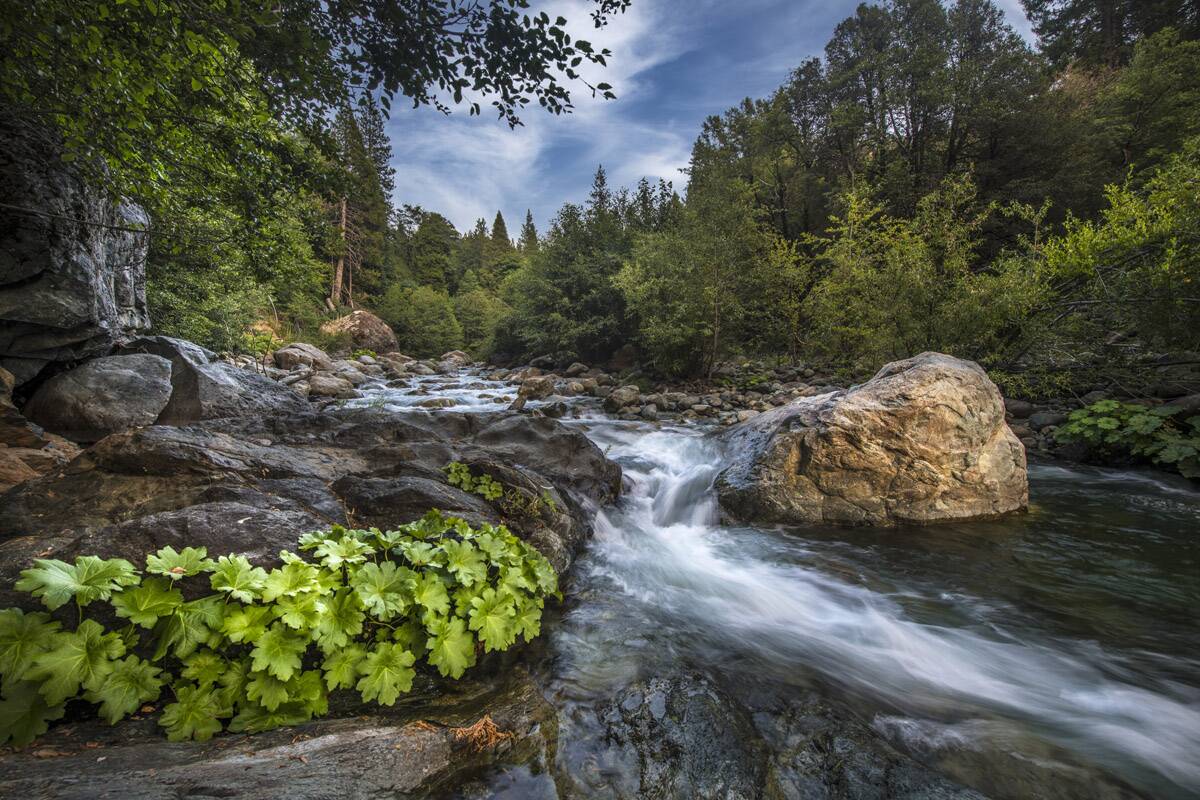 "Peaceful River was taken near Sierra City on the North Fork of the Yuba, one of my favorite waters. The rocks along the river are brilliantly colored and the water a deep green looking from above, so it is very striking."