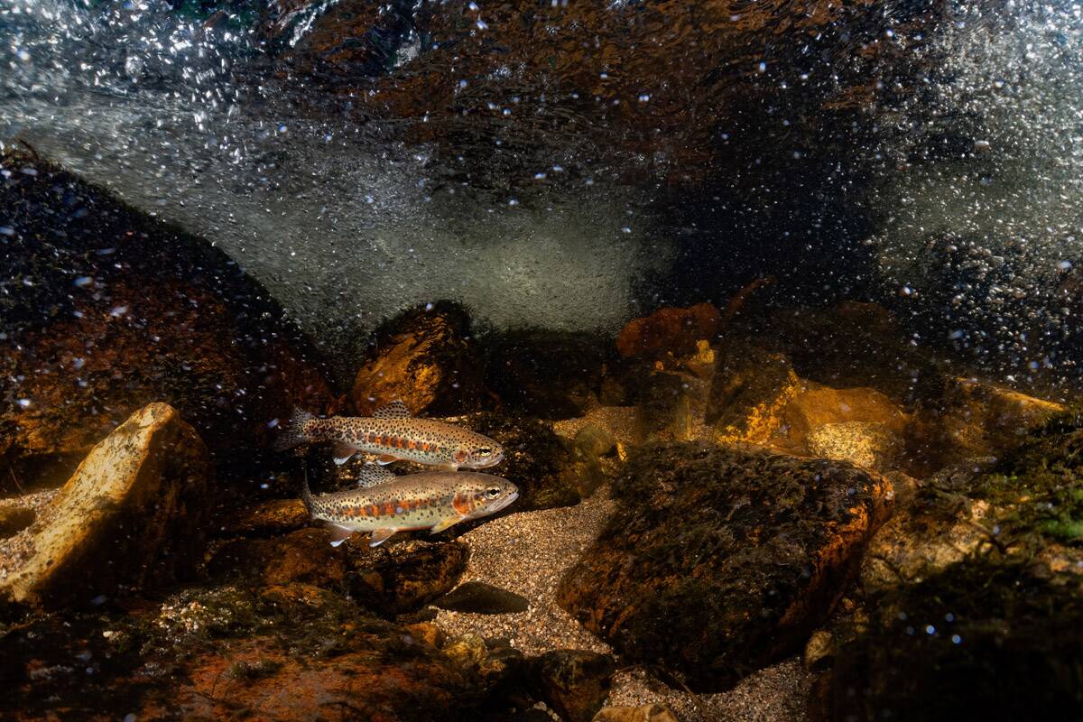 "I found this pair of kern river rainbow trout while exploring the headwaters of the south fork of the kern river. It was quite a surprise to find them here, but it made for a lovely experience snorkeling in the crystal clear waters."