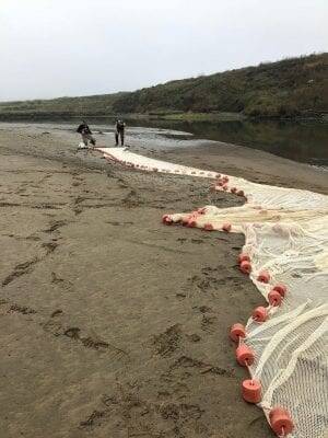 Team prepares a seine net to capture fish. Photo: Paul Vais