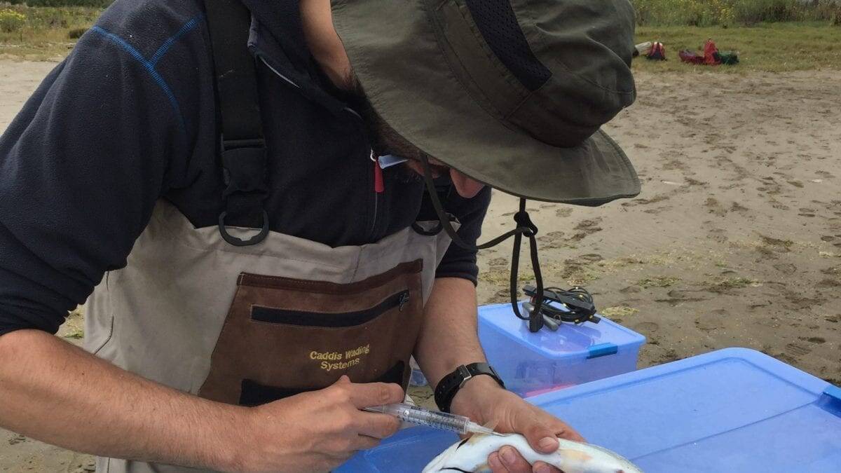 PIT tag is inserted via syringe. Feels like getting a shot. Photo: Paul Vais