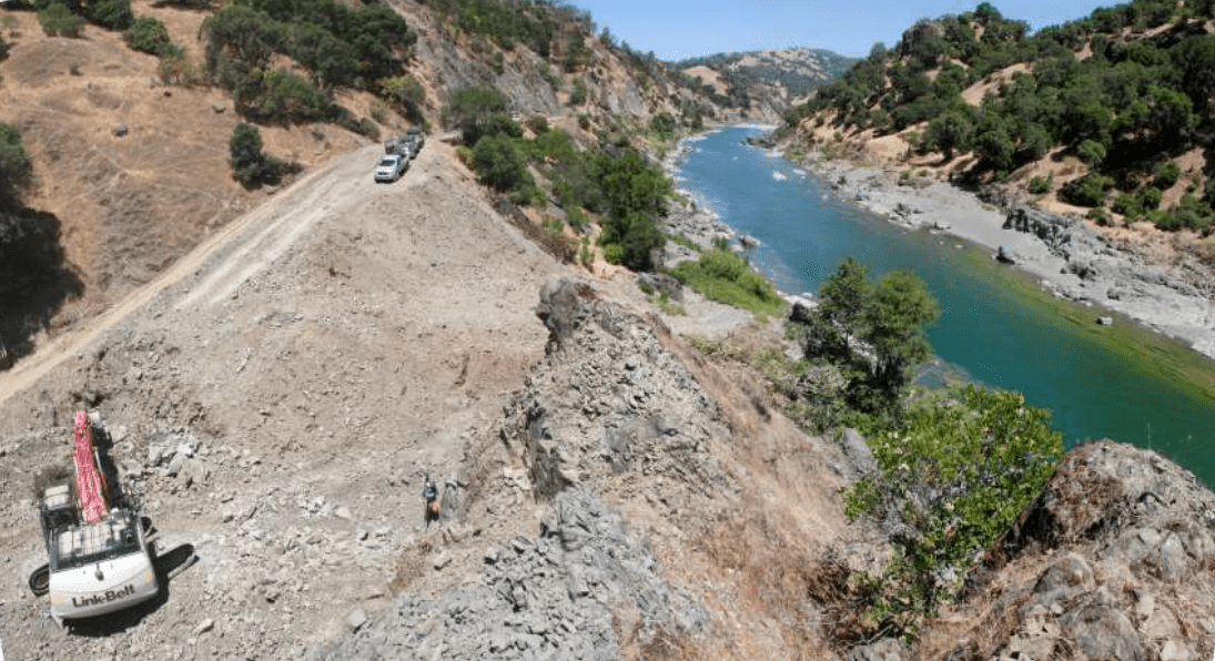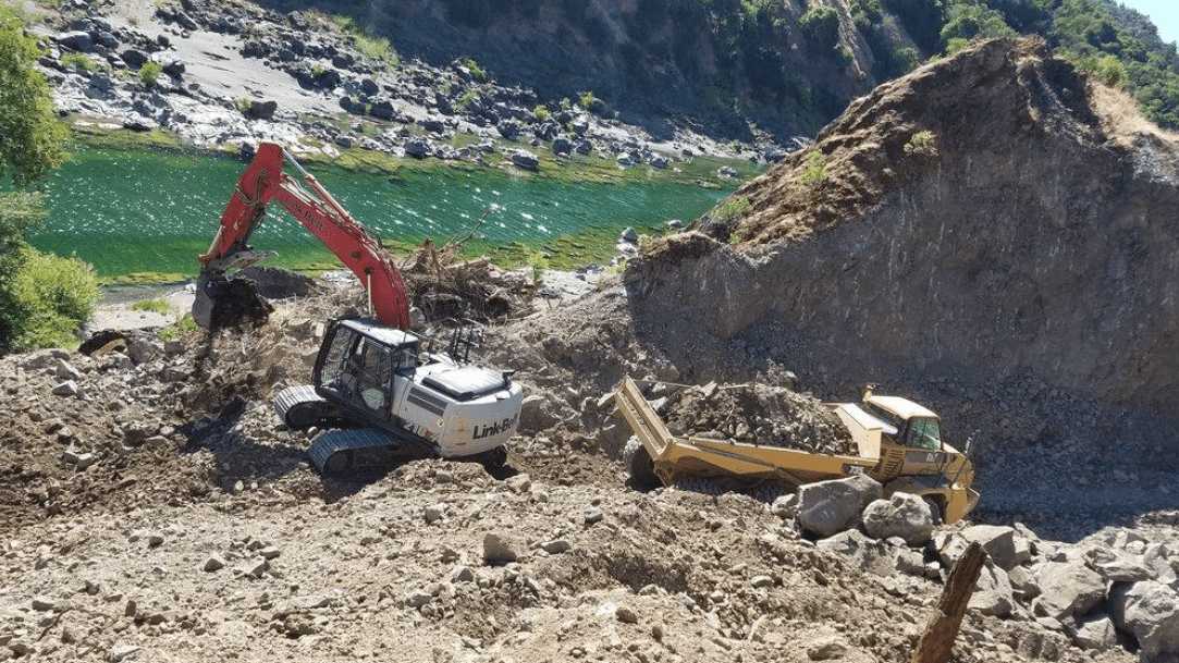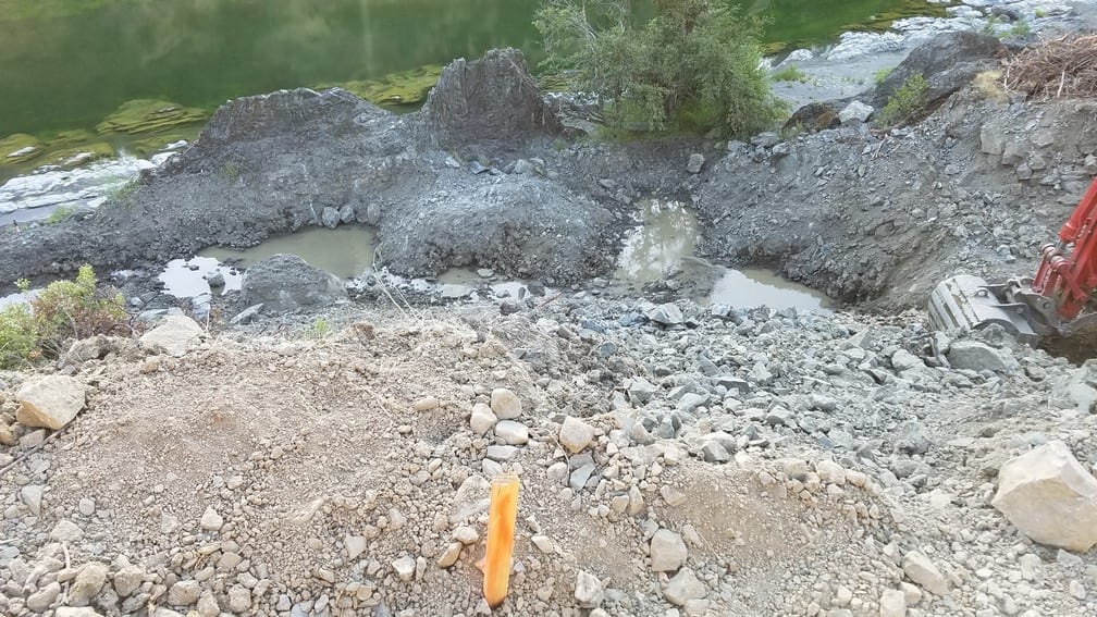 The heavy equipment placed the riprap for the channel plug on the Eel River side of the channel plug.
