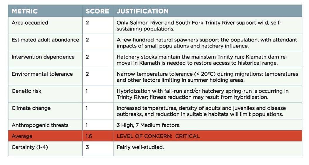 How they Upper Klamath-Trinity Rivers Spring-Run Chinook Salmon Scored:
