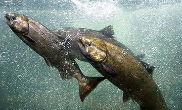 UKTR spring-run Chinook salmon enter fresh water as silvery, immature fish. They lack the breeding colors or kype of fall-run males. Spring-run Chinook salmon once made up the most abundant run in the Klamath Basin. These fish are an indicator of ecosystem health due to their reliance on cold water during the warmest months of the year when streamflows are reduced and temperatures approach their upper tolerance.
