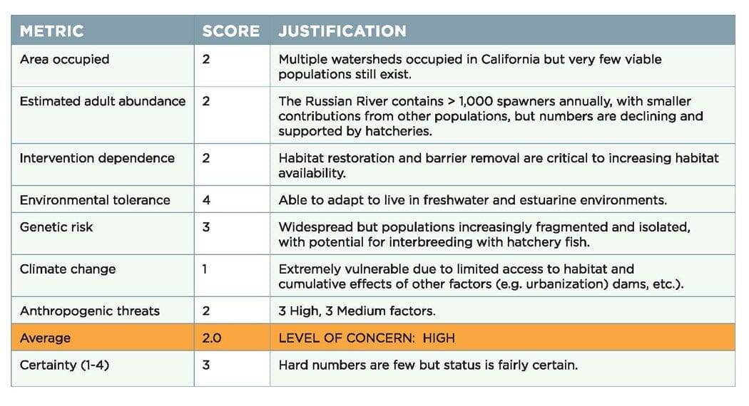 CCC steelhead are more closely related to more southerly steelhead populations south of Monterey Bay than they are to populations north of the Russian River. Steelhead from the Russian River (Sonoma County) south to the Golden Gate Bridge form a distinct genetic group, while steelhead from the Golden Gate Bridge south to Big Sur form another.