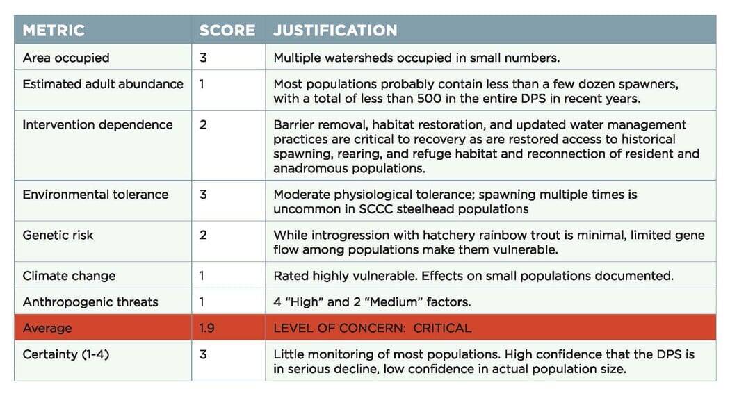 How they South-Central California Coast Steelhead Scored: