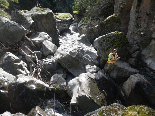 Over the next two years, Caltrout’s objective will be to reconfigure the stream channel in Eagle Canyon to open up access to critical habitat. Fish passage through Eagle Canyon is currently blocked by massive house-size boulders and unjumpable cascades, which are likely remnants of more than a century of hydropower development and human modification of the watershed.